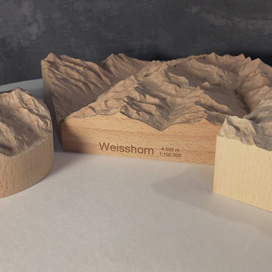 SUMMIT – Mountain relief Mont Blanc: The 4,809 m high Alpine giant as a detailed 3D relief made of high-quality beech wood.
