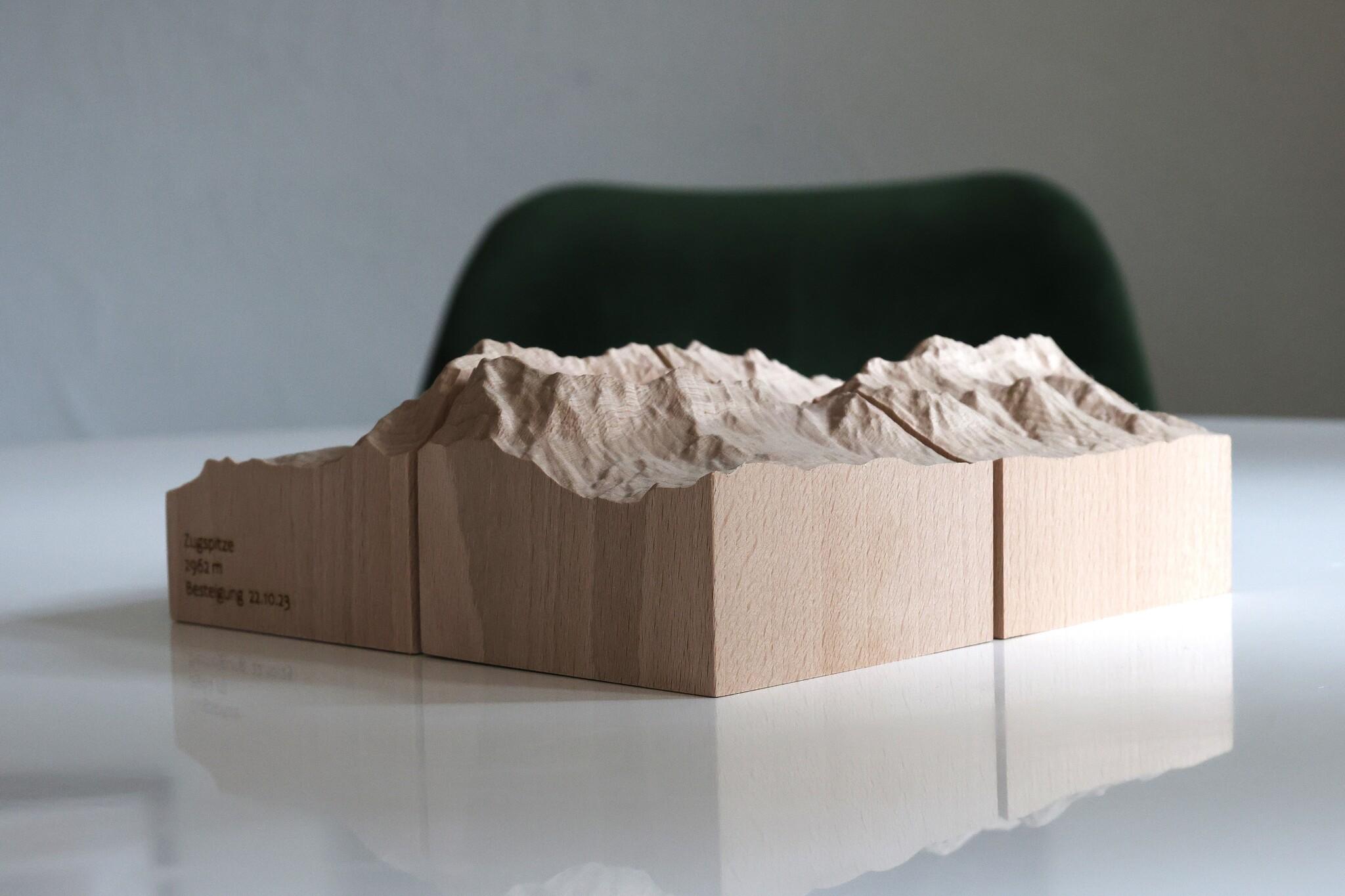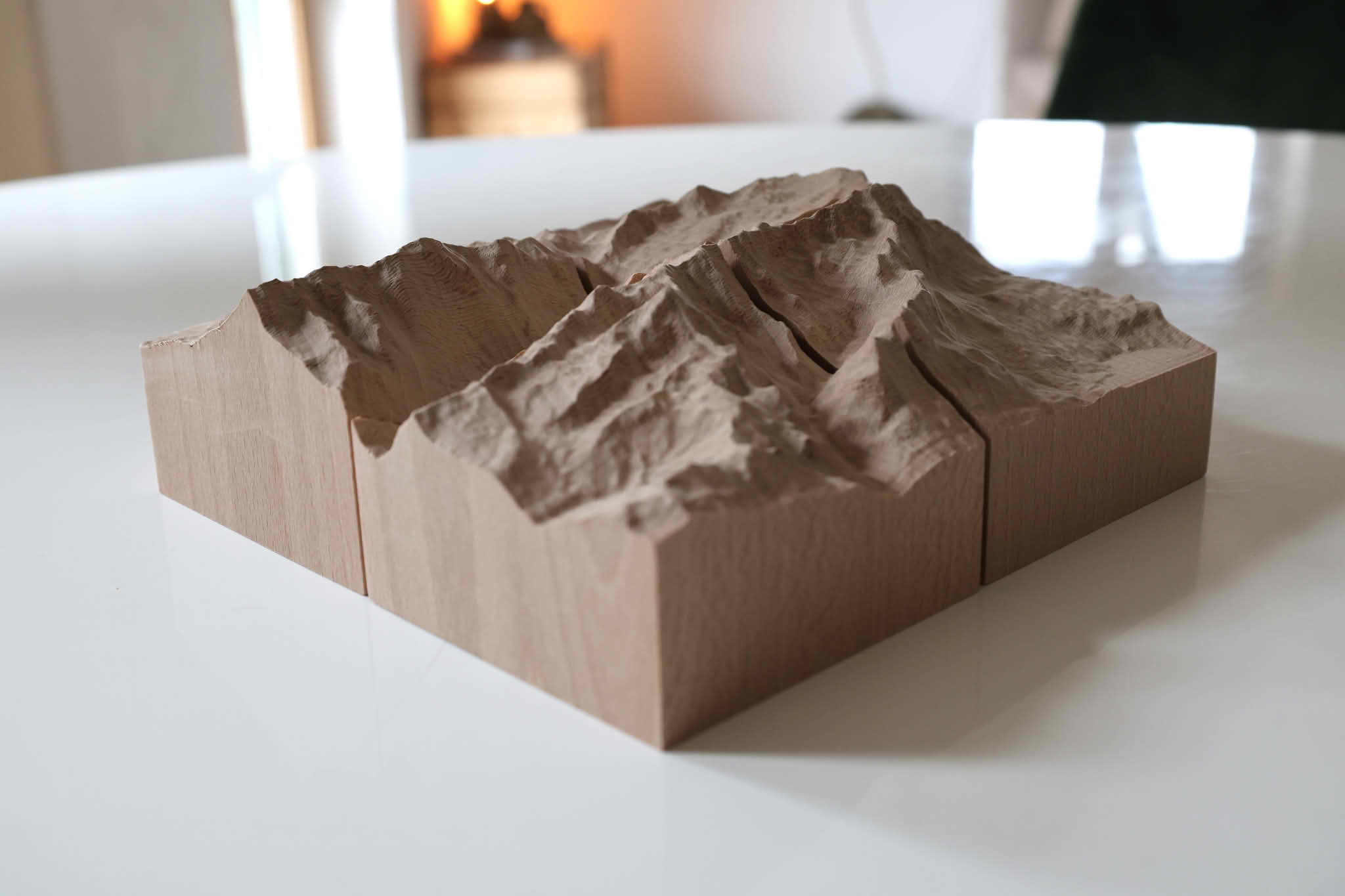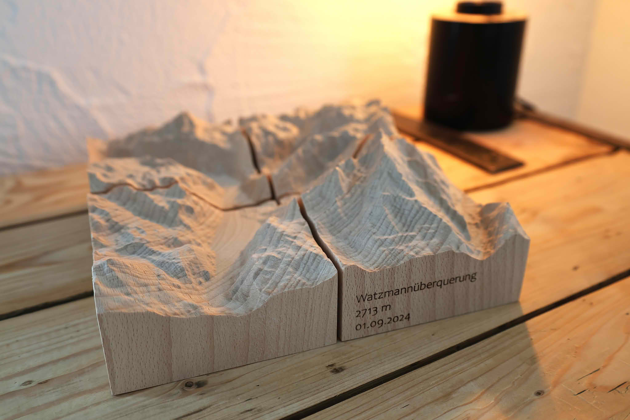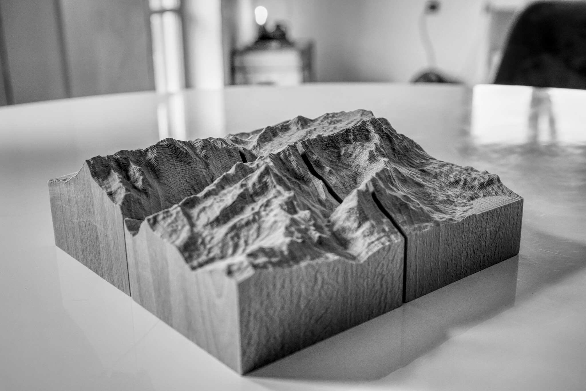 Auf einer Grundfläche von 10 x 10 cm verewigen wir 5 x 5 km Alpen im Maßstab 1:50.000.