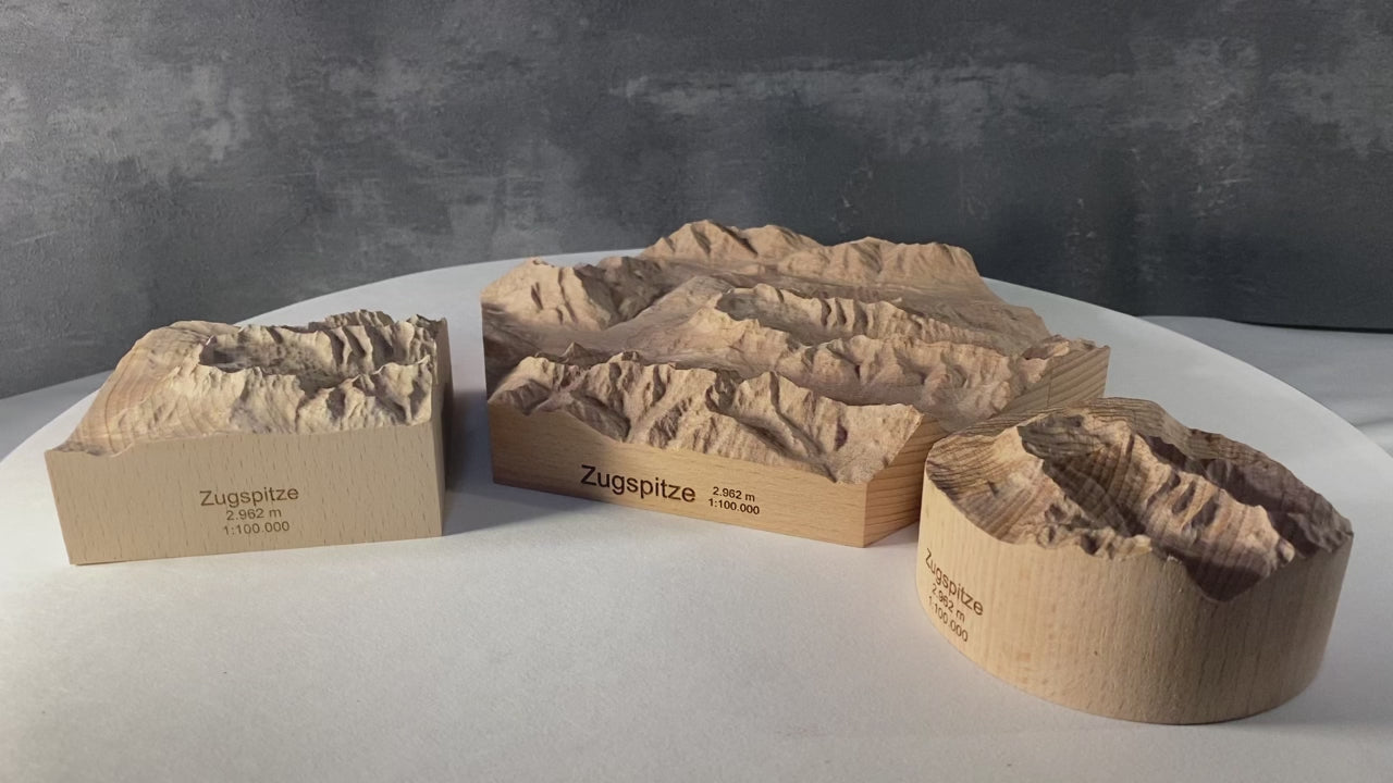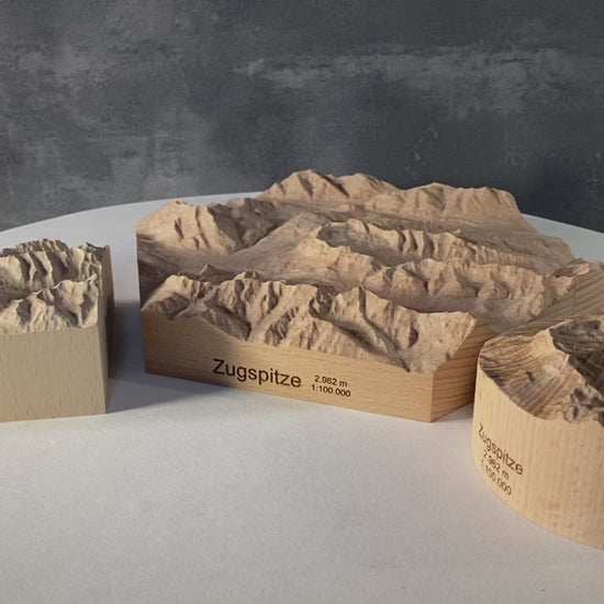Das SUMMIT – Bergrelief Zugspitze zeigt den 2.962 m hohen Gipfel an der Grenze zwischen Deutschland und Österreich als hochwertiges Holzrelief – perfekt für alle, die diese markante Region lieben.